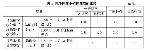《污水綜合排放標準》中磷酸鹽排放標準如下表所示: