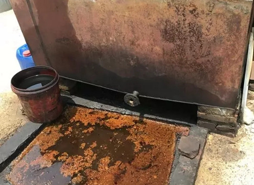 圖7  5立方米左右的鐵皮箱內裝滿廢油。